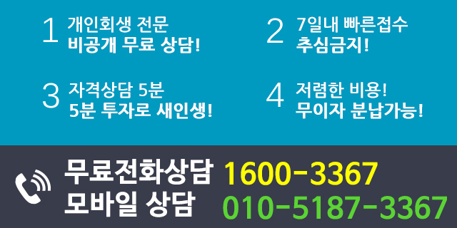 -일단 내가 의정부개인회생 자격 조건이 되는지 부터 알아봐야 합니다. 빚이 있어서 신청문의를 했지만 자격이 안되는 사례도 3명 중 1명은 됩니다. 자격이 되더라도 실제 얼마나 빚을 탕감 받을 수 있는지가 중요합니다. 1:1맞춤 무료전화 상담시 5분이면 자격과 빚탕감률을 계산 해 드립니다. 이후 간단히 절차안내와 비용을 알려드리고 마지막으로 문자로 서류를 받을 수 있습니다. 문자로 안내 받은 서류를 우체국 등기로 보내면 의정부개인회생 절차가 시작 됩니다. 법원 접수 후에는 법무사 사무소 연락 잘 받고 안내 받은 서류만 잘 준비해 보내주면 됩니다.